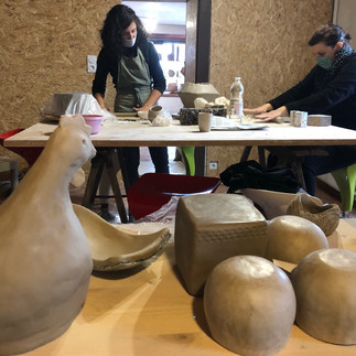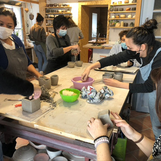 Sonia, Cathy, Cidalia, Lorène, Christine, Mélodie et Sophie viennent de démarrer le bloc 1... c'est parti pour 15 journées de formation, juste le temps de balayer les différentes techniques de façonnage manuel et de s'initier au tournage...